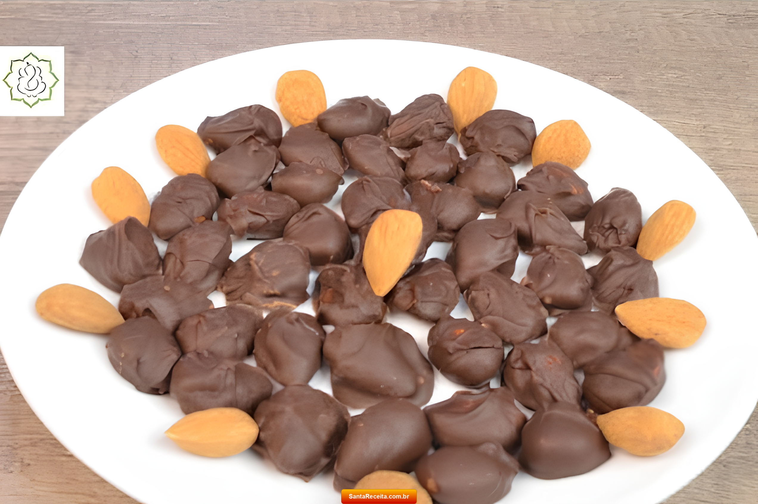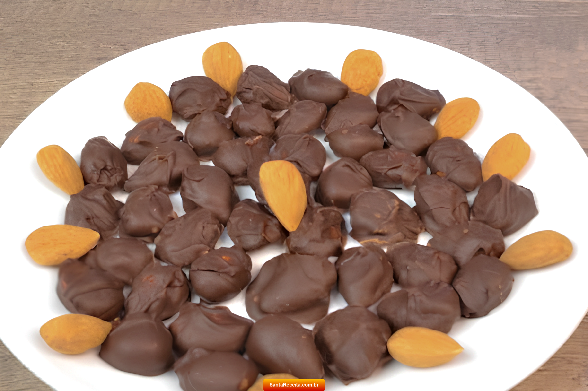 • Cubra as amêndoas e deixe elas em temperatura ambiente ou na geladeira até o chocolate endurecer.