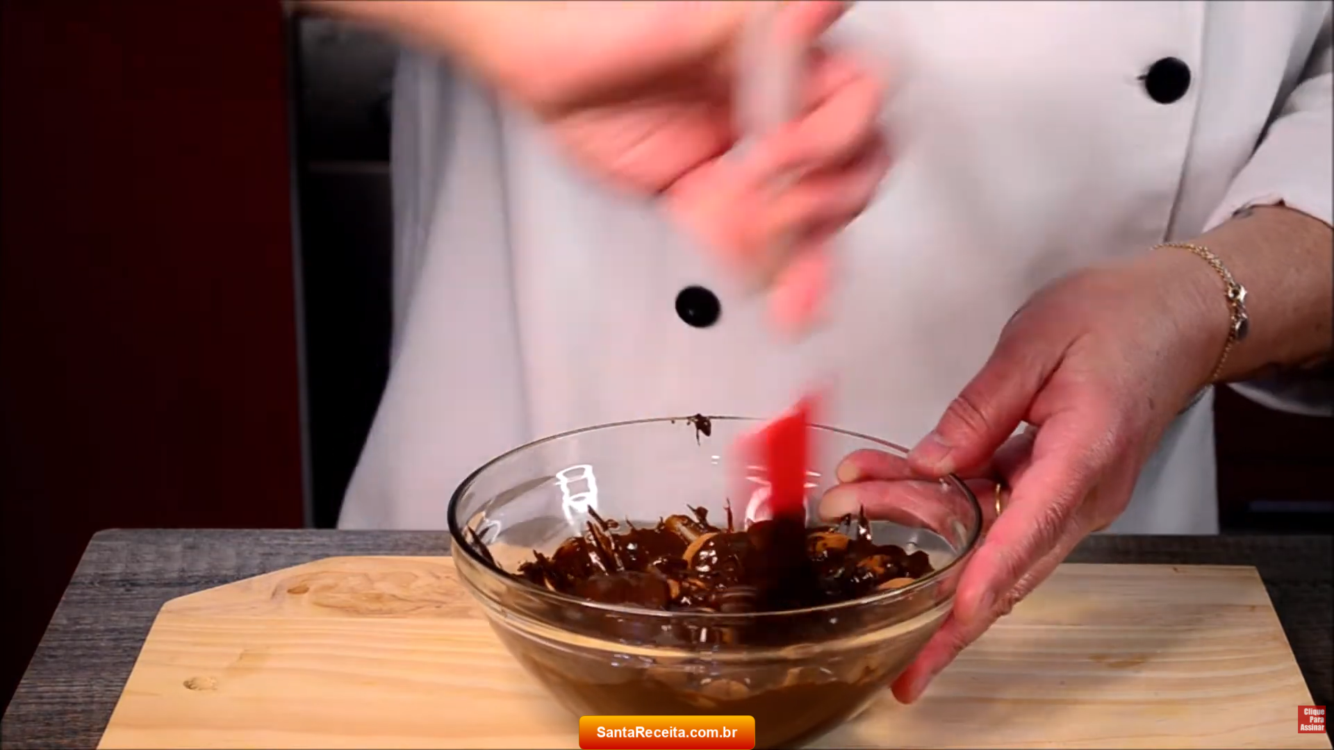 • Junte as amêndoas tostadas com o chocolate derretido e misture muito bem para cobri-las completamente.