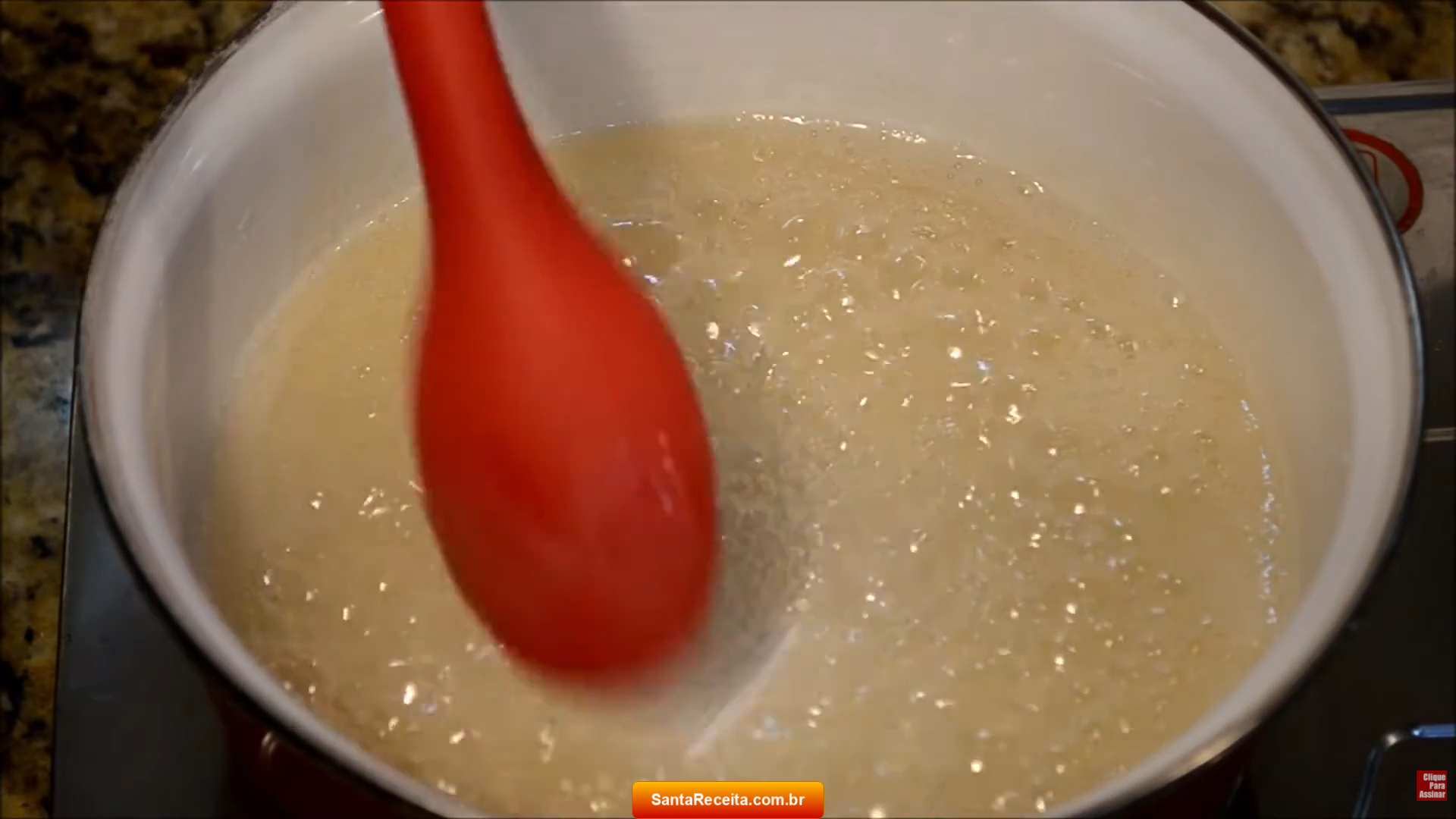 - Adicione em uma panela grande a água filtrada e o açúcar impalpável.