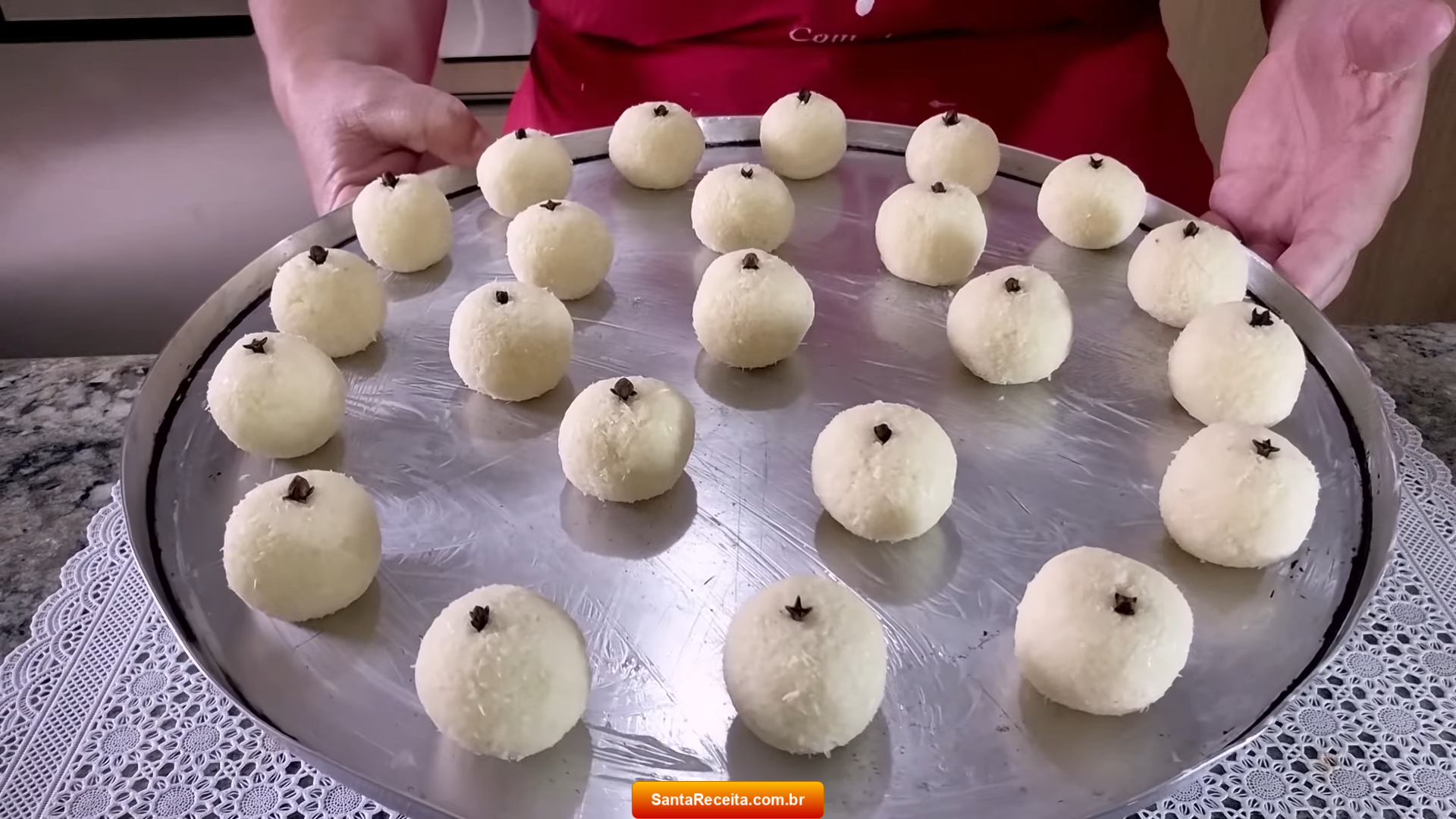 - Unte as mãos com manteiga ou margarina, pegue porções da massa e modele os biscoitos em formato de bolinha.