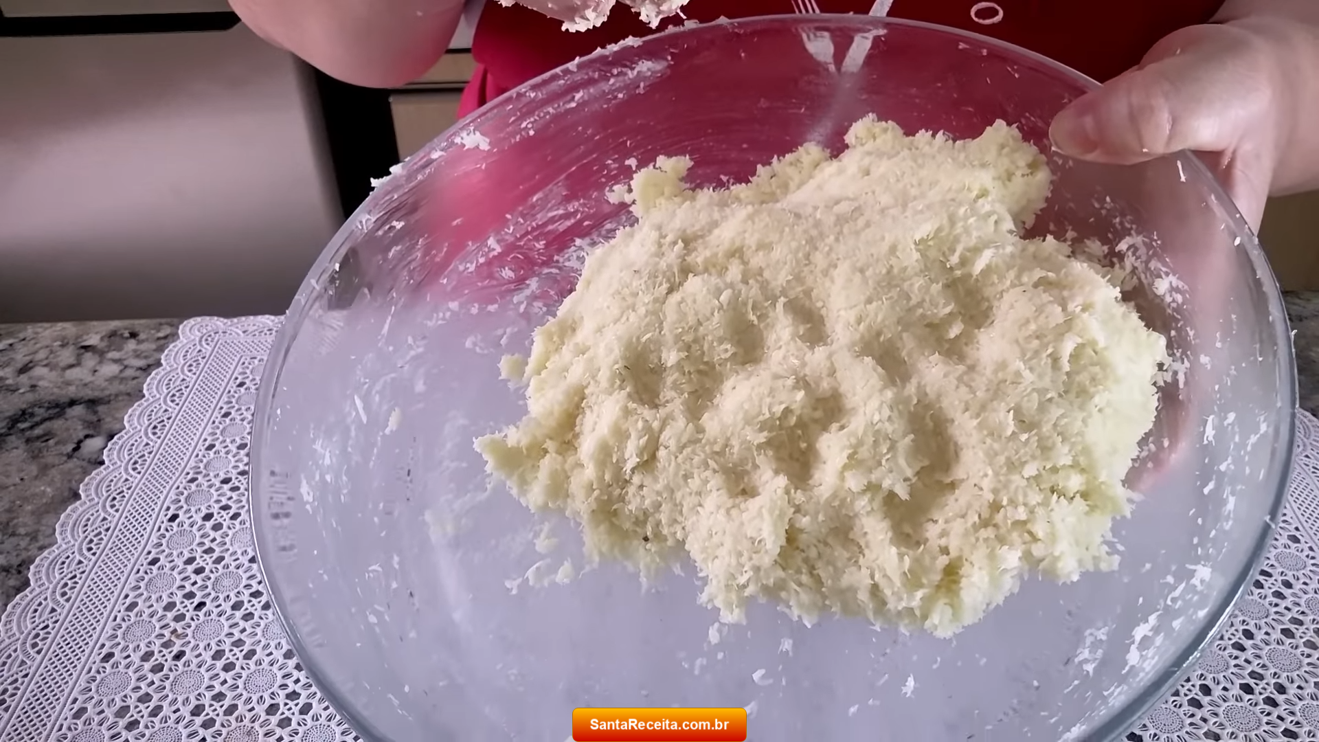 - Misture bem com as mãos, acrescente o amido de milho e misture novamente até homogeneizar a massa.