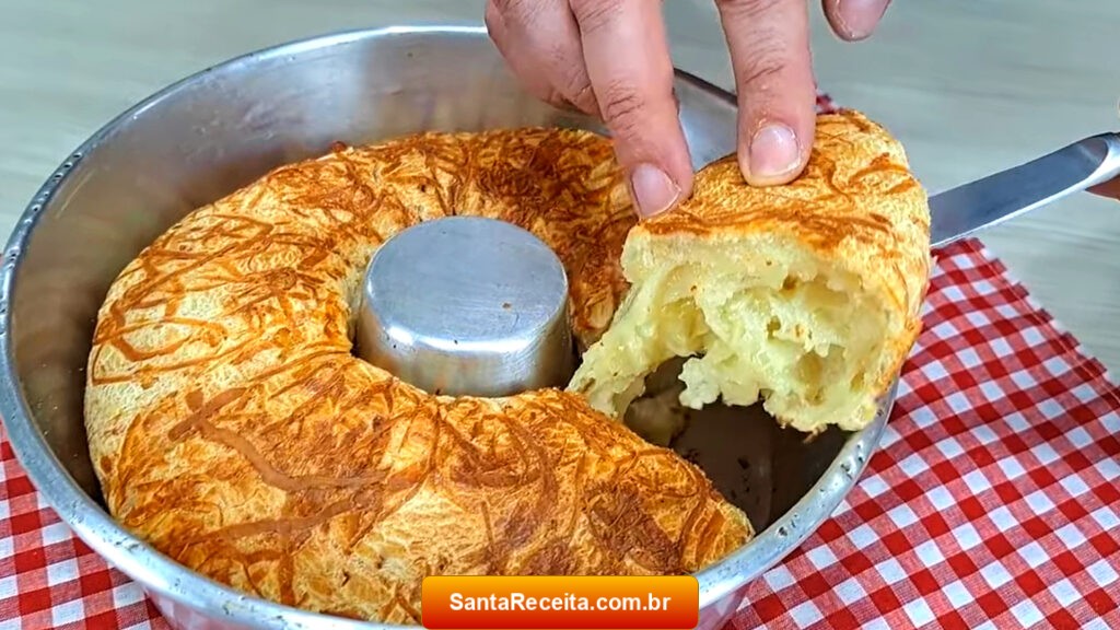 - Desenforme o bolo de coco quando já estiver frio e ele está pronto para ser cortado e servido.