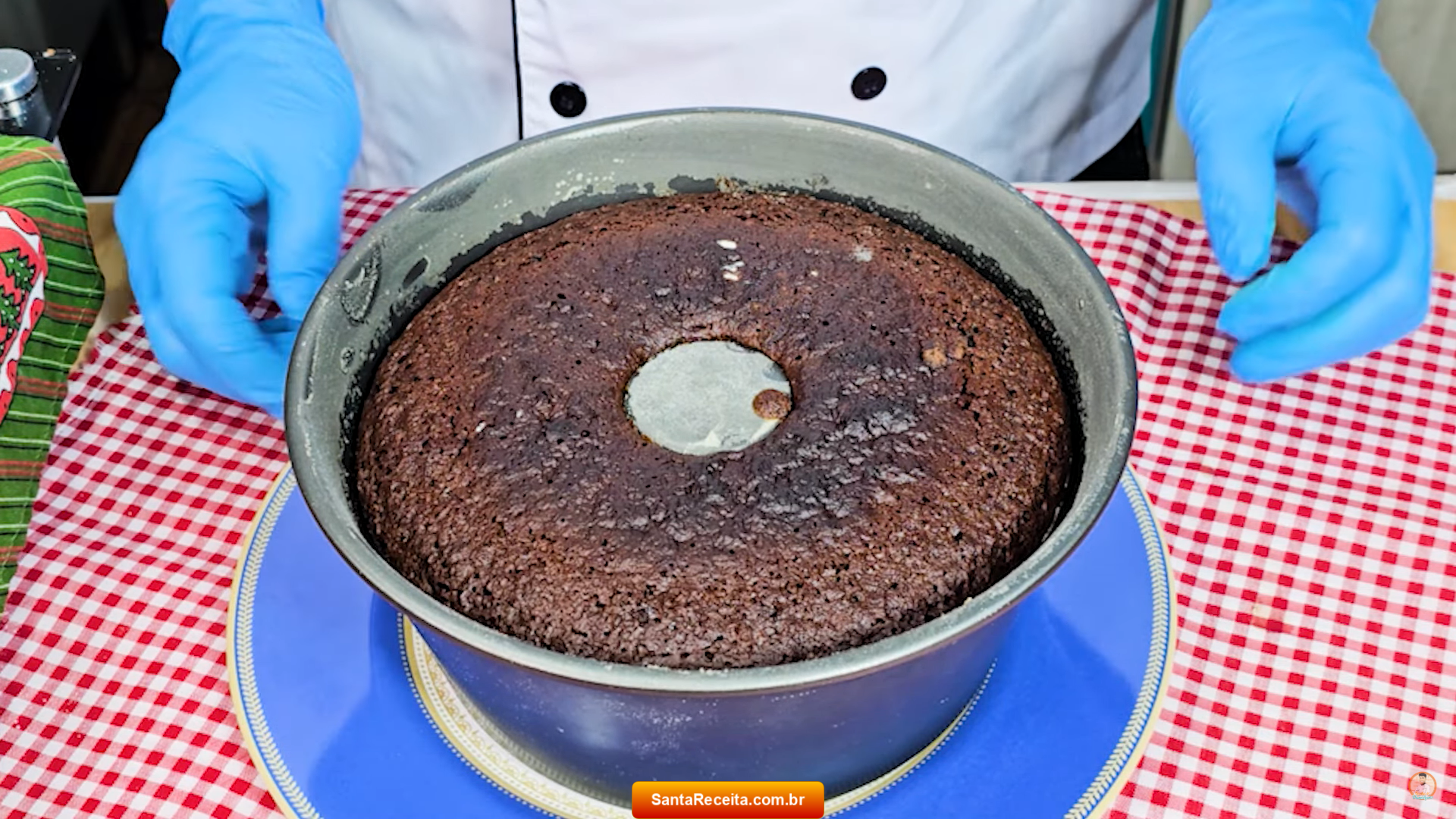 • Aguarde o bolo esfriar em temperatura ambiente, passe uma faca na lateral e desenforme.