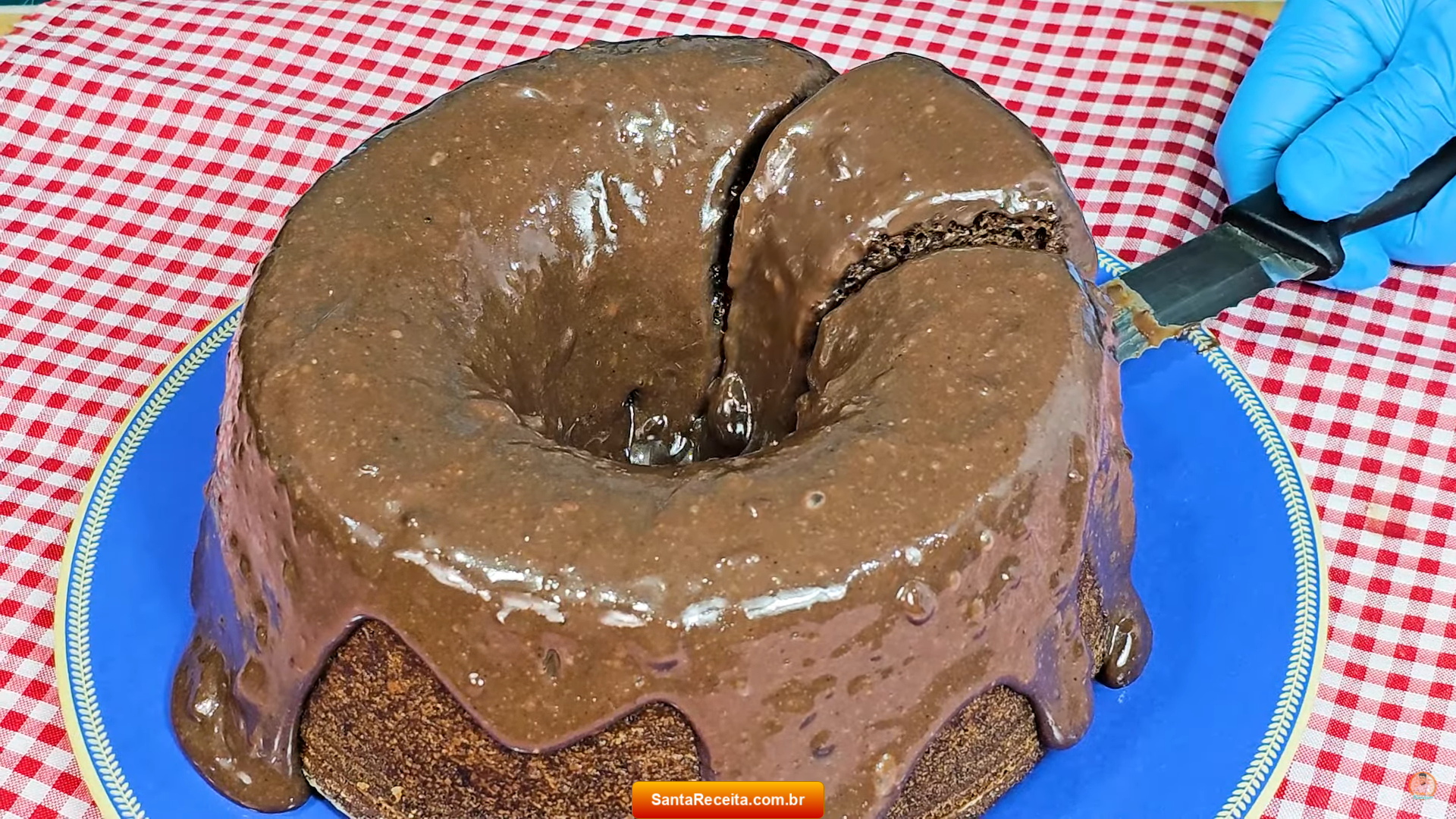 • Finalize acrescentando calda de chocolate a gosto por cima do bolo pão de mel e ele está pronto.