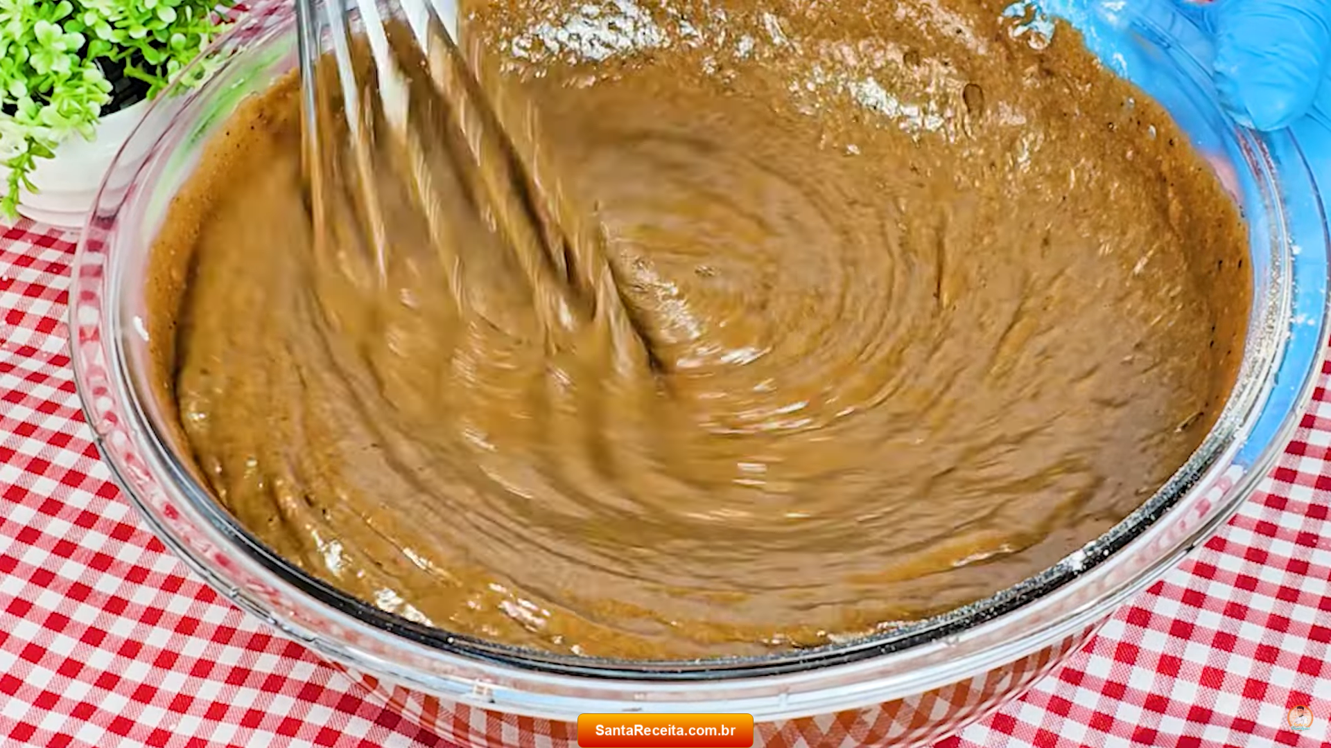 • Acrescente a farinha de trigo, o café quente e misture muito bem até formar uma massa lisa e homogênea.