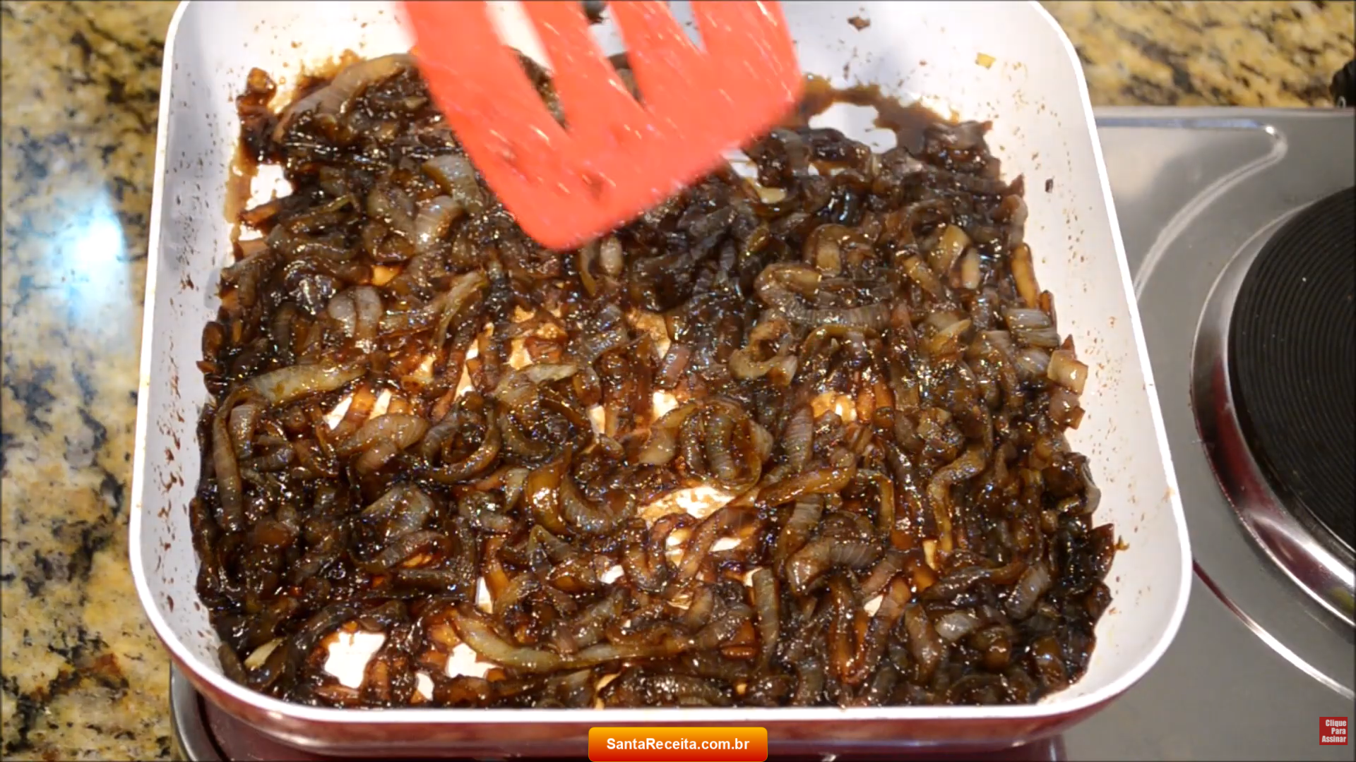 • Cozinhe em fogo baixo mexendo sempre por cerca de 15 minutos, desligue o fogo e a cebola caramelizada está pronta.