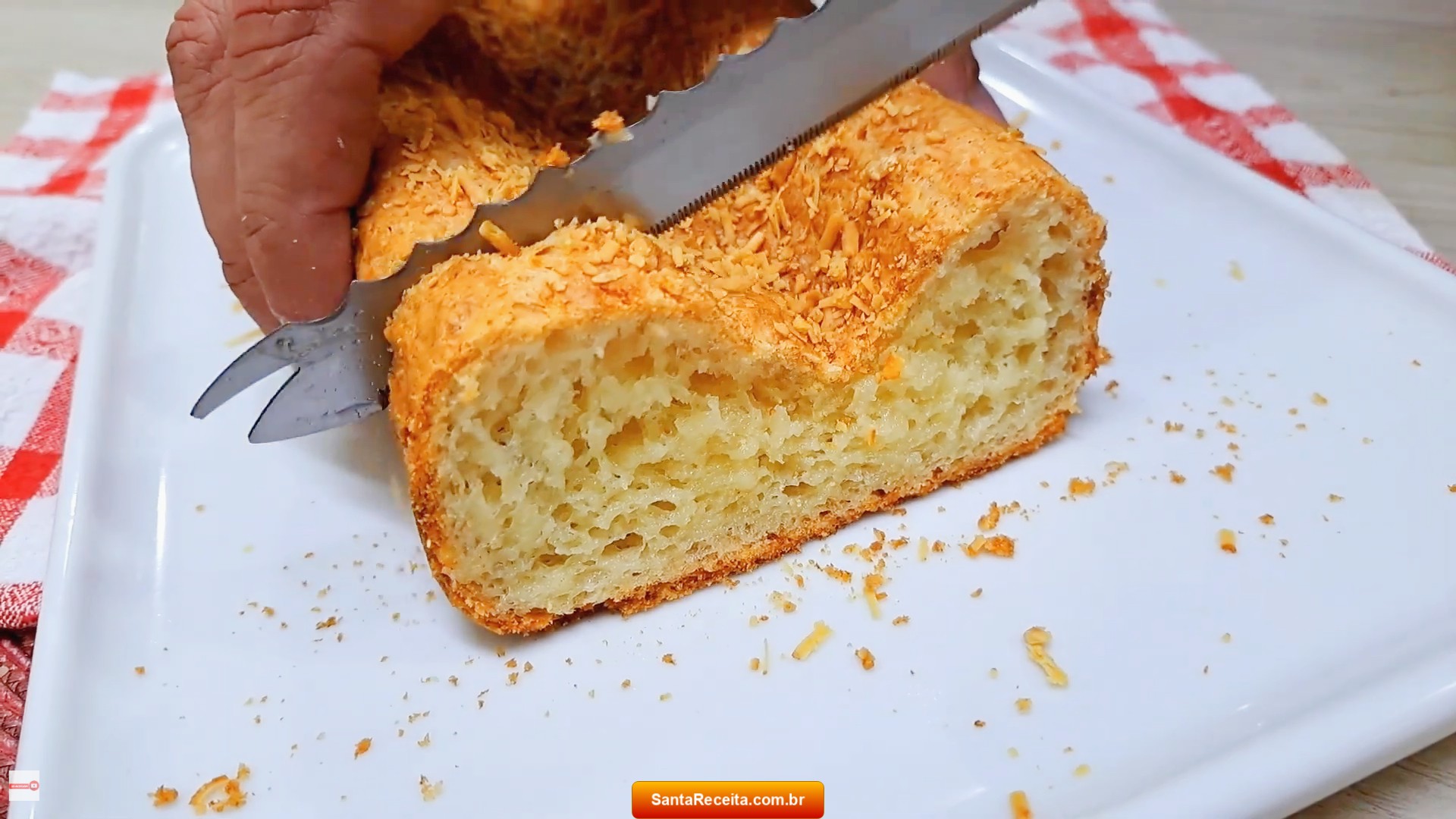 • Desenforme o pão de queijo após esfriar um pouco, corte as fatias como preferir e está pronto para servir.