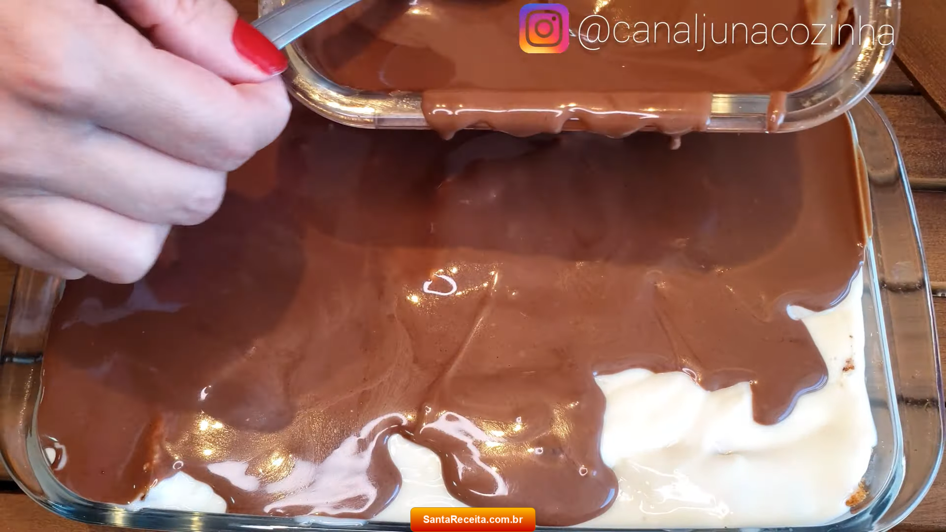 - Adicione outra camada de creme e em seguida mais uma das fatias. Siga alternando entre as camadas até usar todo o creme e as fatias.