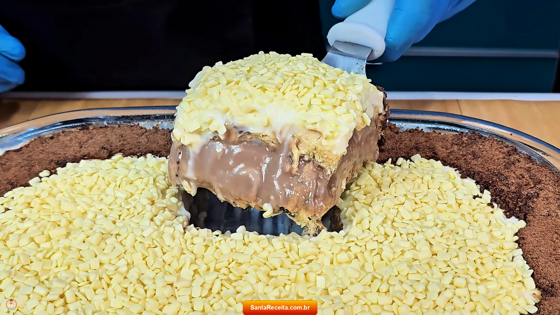• Decore a sobremesa com chocolate em pó e granulado a gosto e ela está pronta para cortar e servir.