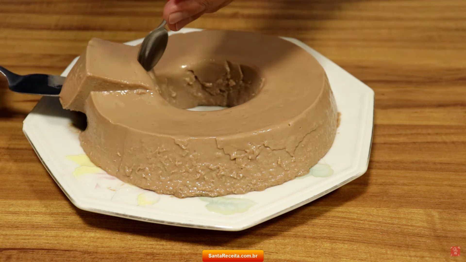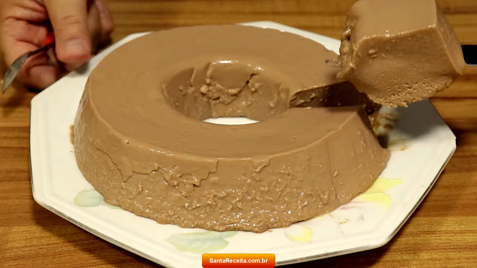 - Passe uma faca nas laterais, desenforme se preferir e o pudim está pronto para cortar e servir.